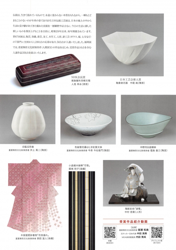 2月3日(水)~8日(月)の6日間、「第67回日本伝統工芸展 福岡展」が福岡市の福岡三越9階「三越ギャラリー」で開催されます。
