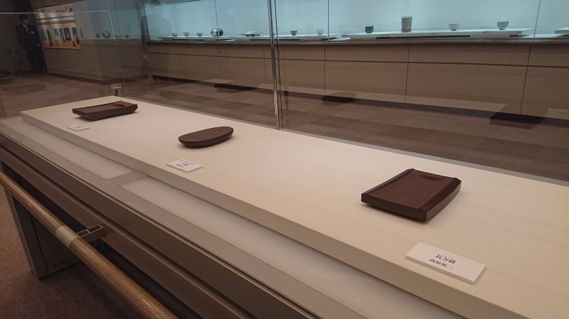 日本工芸会山口支部会員39名の内、硯作家は4名で、下関市からは堀尾信夫の赤間関硯1面と髙原祐二の2面、宇部市からは日枝玉峯・日枝陽一父子の赤間硯が1面づつ出展されています。